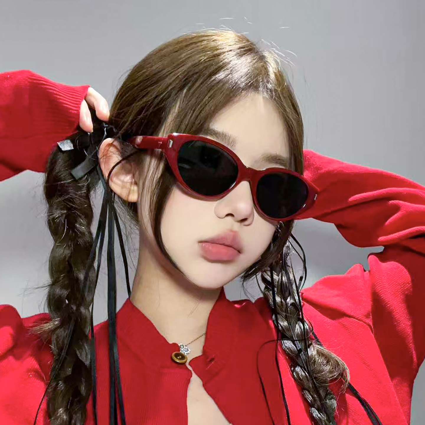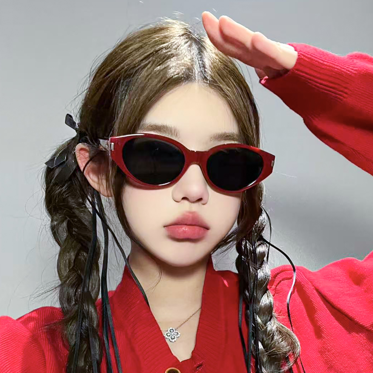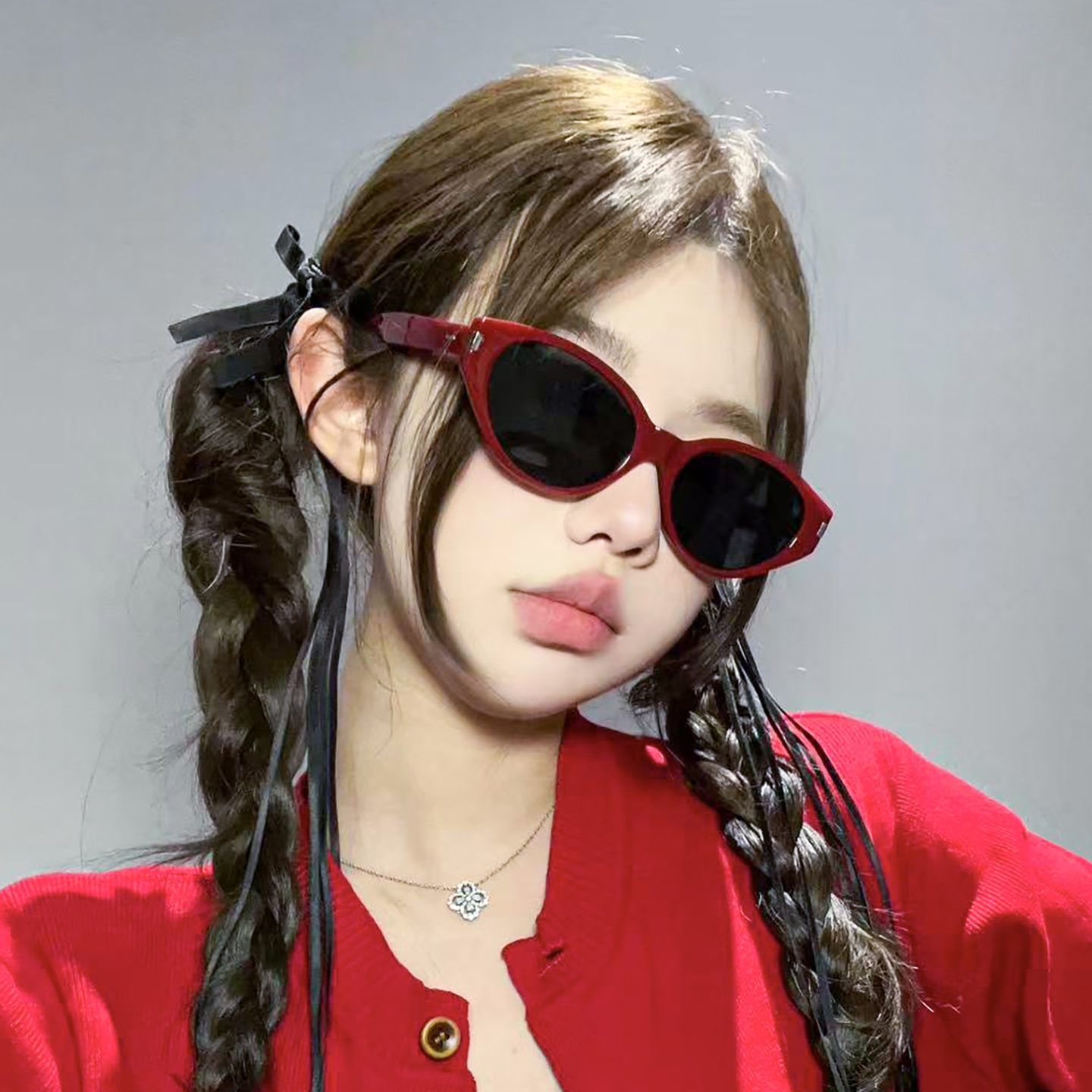 2025新款网红猫眼红色墨镜女款高级感太阳镜防紫外线韩版潮显脸小