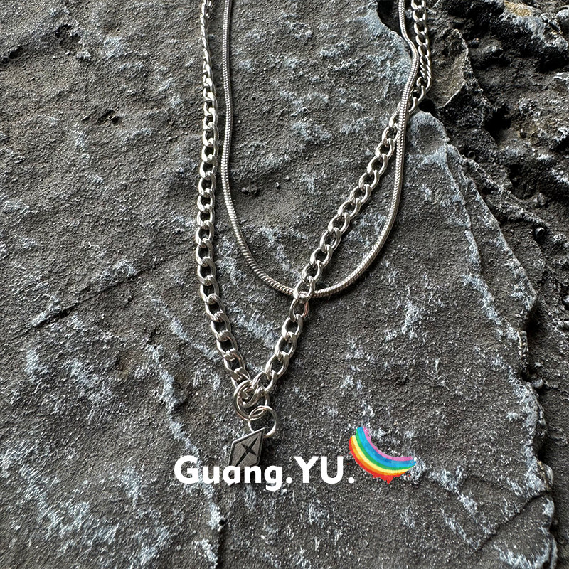 GuangYu双层叠戴菱形小吊坠钛钢项链男简约百搭气质锁骨链配饰潮