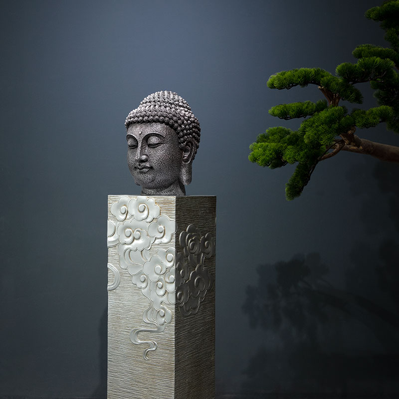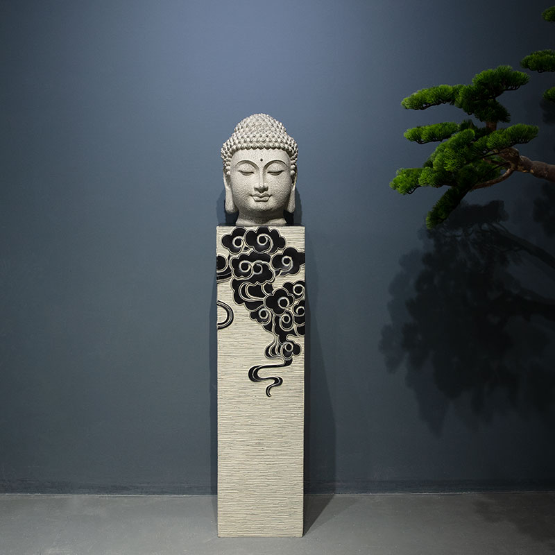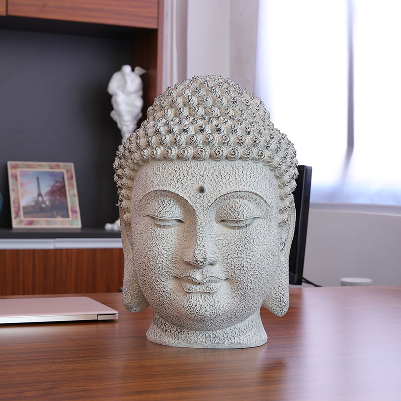 新中式仿石佛头古典佛像佛首禅意书房玄关走廊工艺品创意桌面摆件