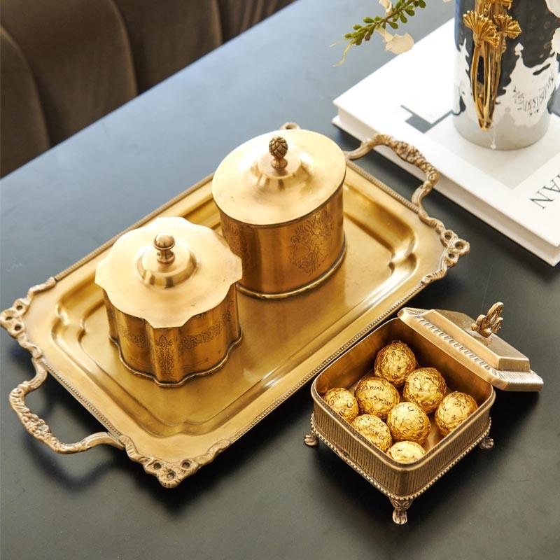 进口黄铜覆古雕花镂空托 托盘摆件样板间双耳欧式花盆收纳桶冰桶