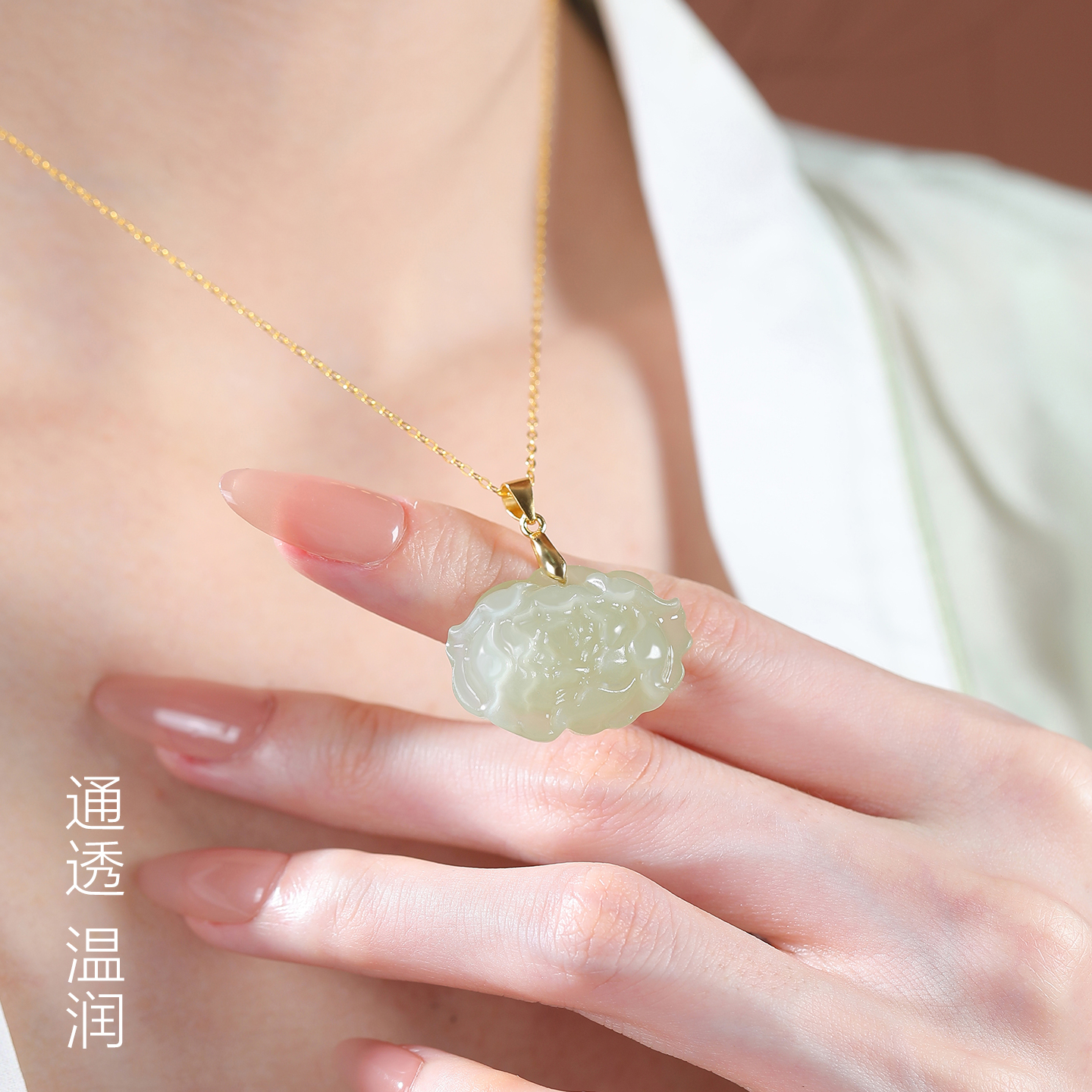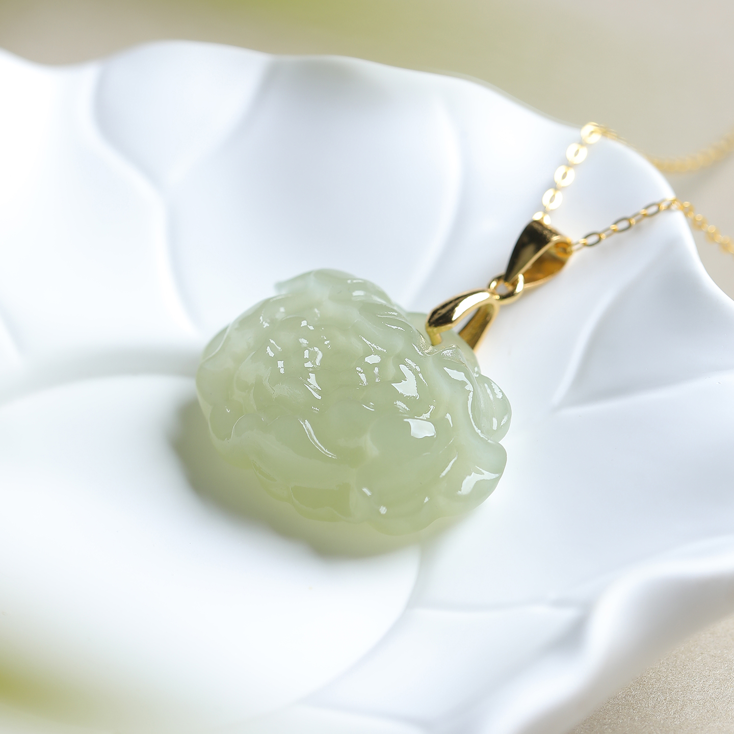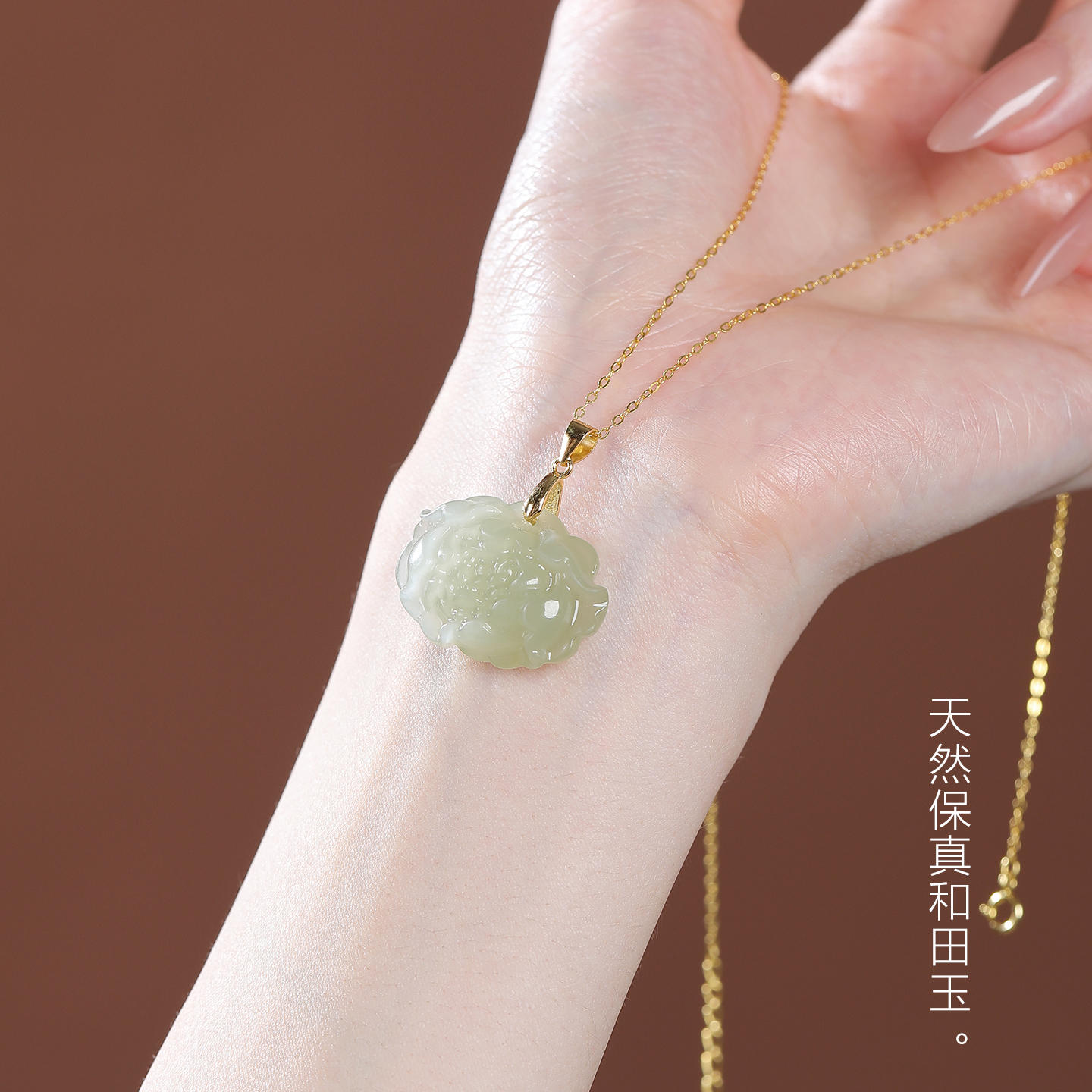 和田玉坠玫瑰花金项链女款纯银吊坠女金镶玉石2026新款生日礼物
