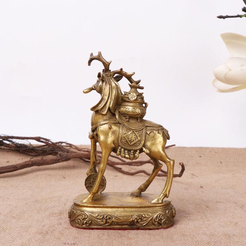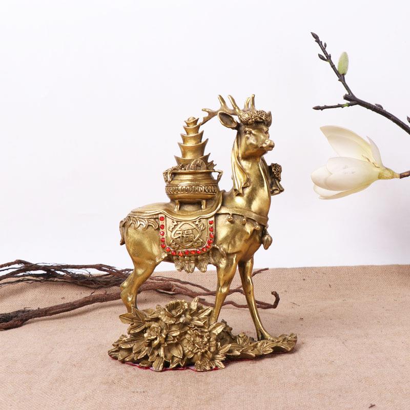 室鹿进宝鹿盆家居办公工艺品摆0117件铜鹿元宝聚宝鹿