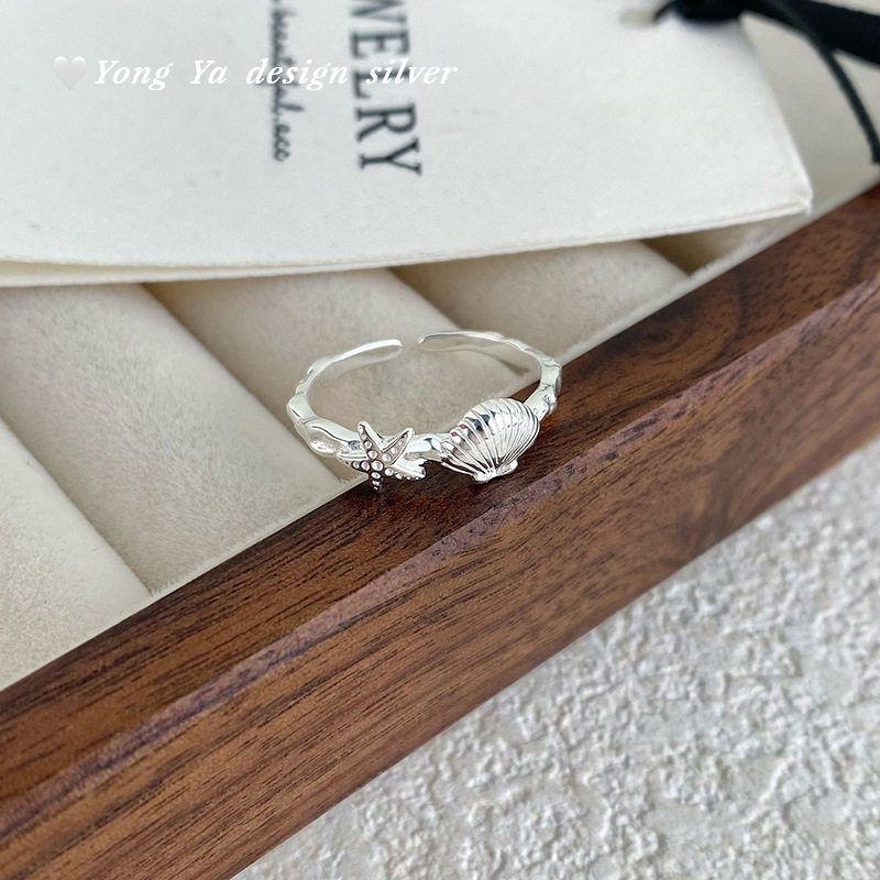 S999足银海星贝壳戒指夏日度假风海洋文艺温柔气质清新手饰代发
