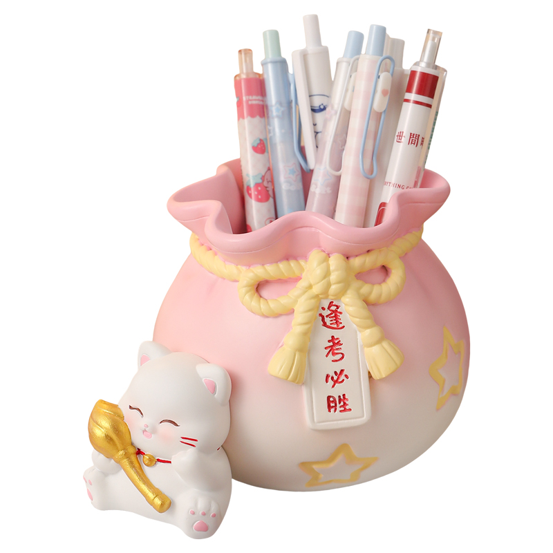 创意可爱招财猫笔筒办公桌面摆件治愈系好运连连励志毕业生日礼物