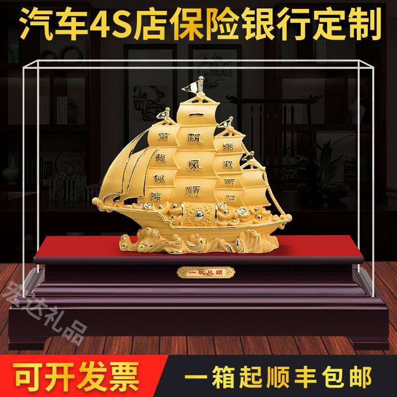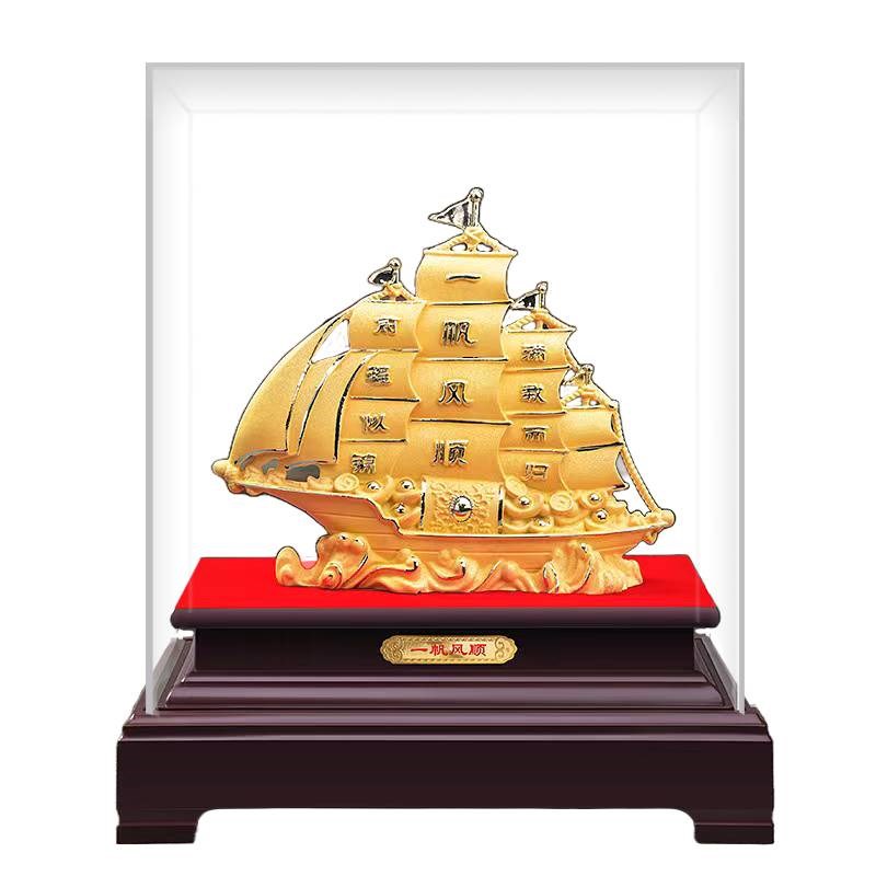 绒沙金一帆风顺帆船摆件家u居公司大厅办公室桌商务乔迁镀金工艺