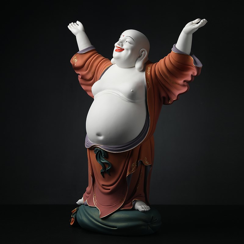 速发陶大《2吋欢天喜地弥省佛 极彩》勒级瓷师林建平 佛像