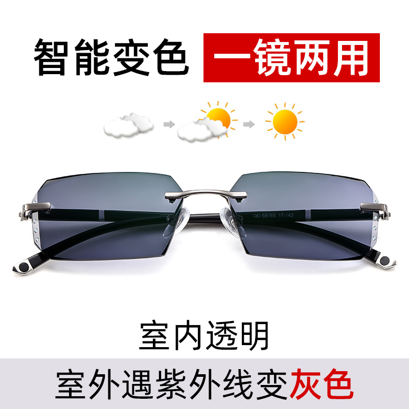 配成品近视眼镜男钻石切边无框眼睛架平光变色散光近视镜女有度数