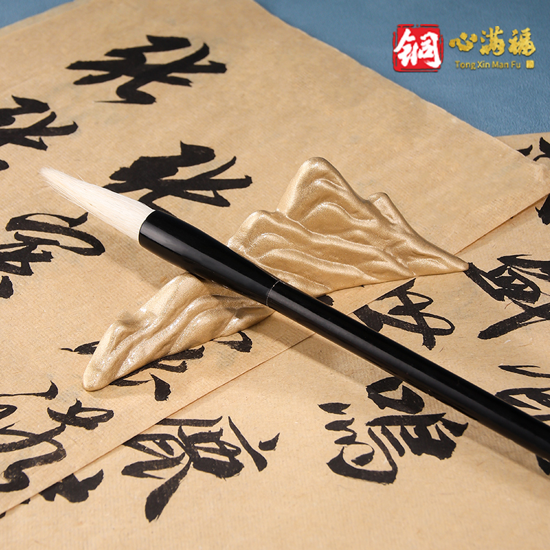 全铜金山镇纸摆件铜工艺品桌面玄关装饰品多功能创意实心文房笔架