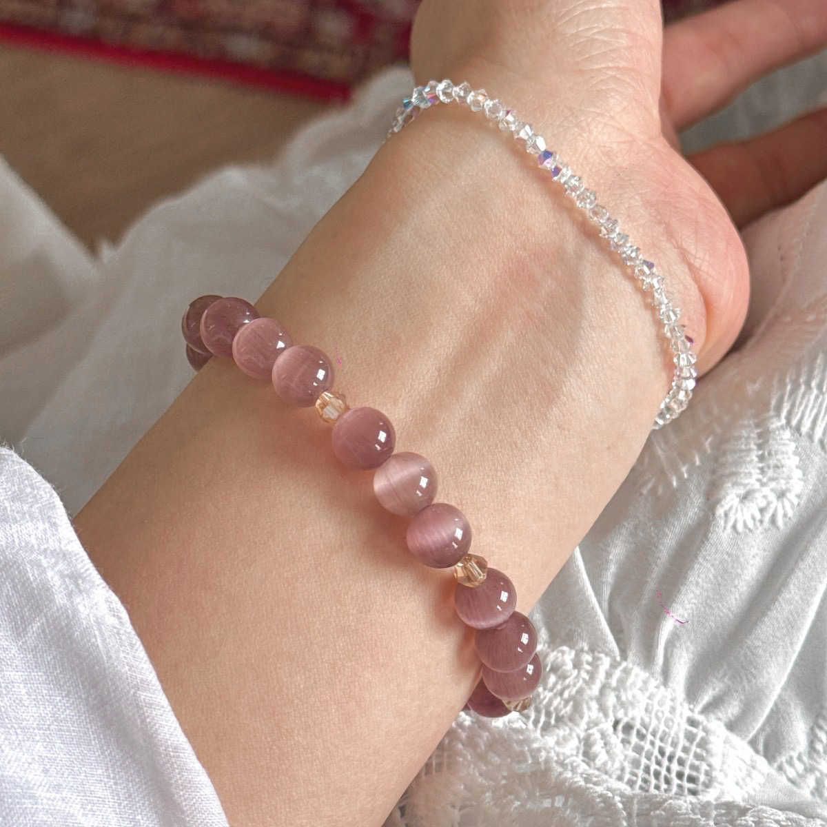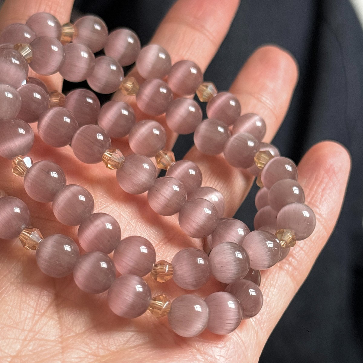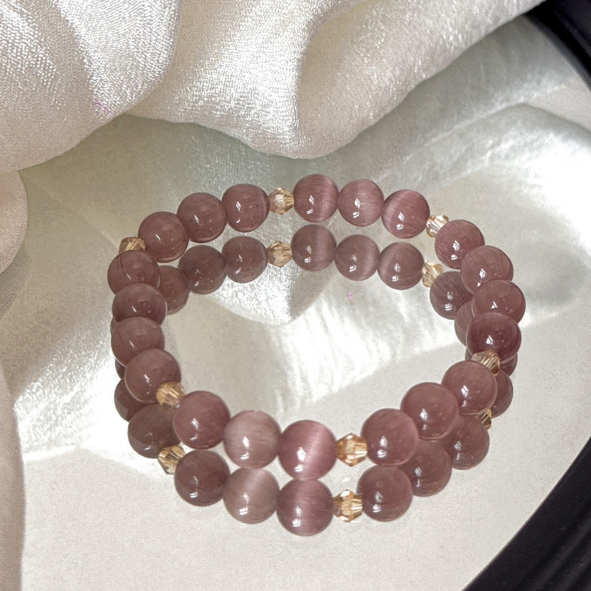 新中式烟紫色猫眼石手串百搭优雅手链送闺蜜礼物单戴叠戴百搭首饰