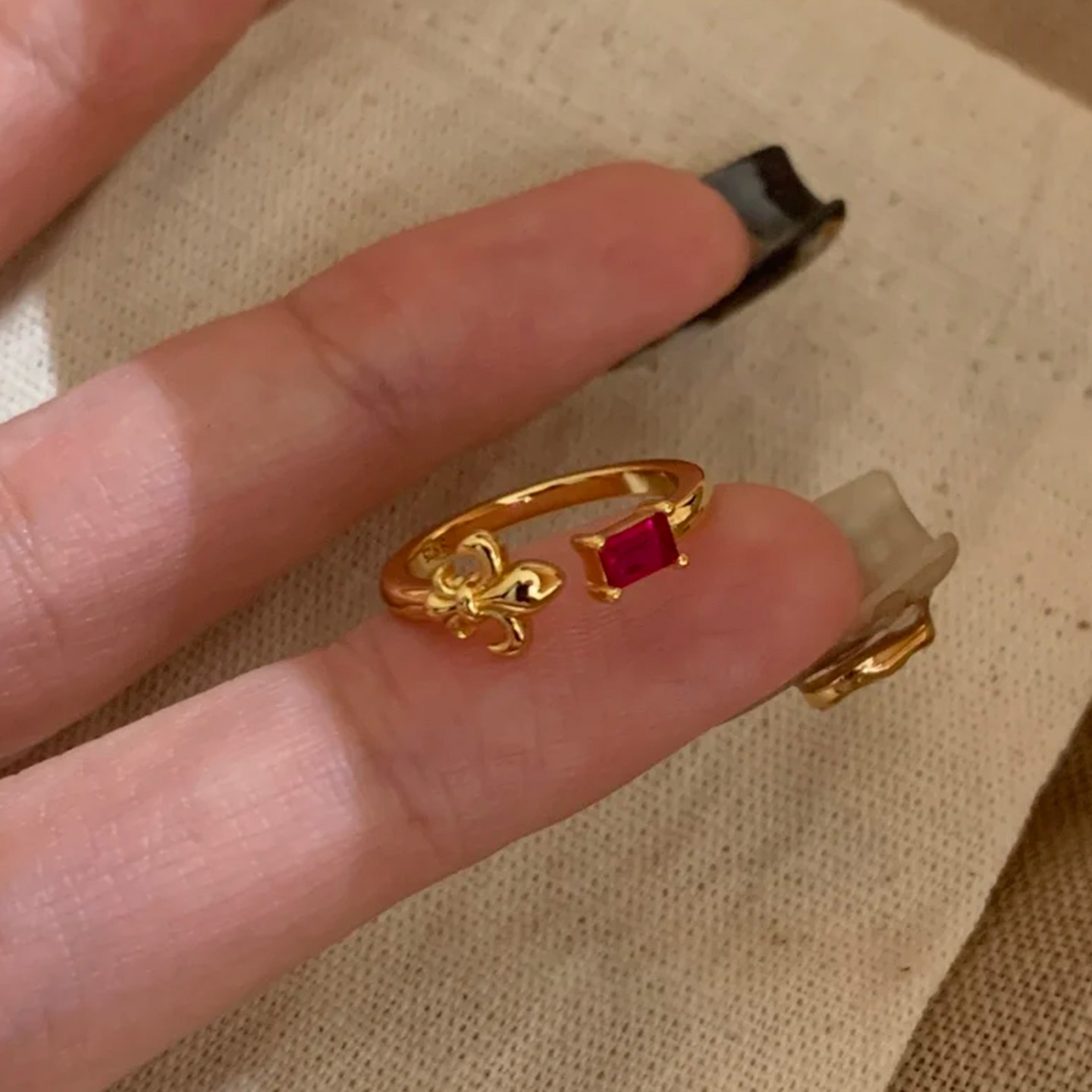 复古红色仿锆石鸢尾花戒指女轻奢高级感宫廷风食指戒小众设计尾戒