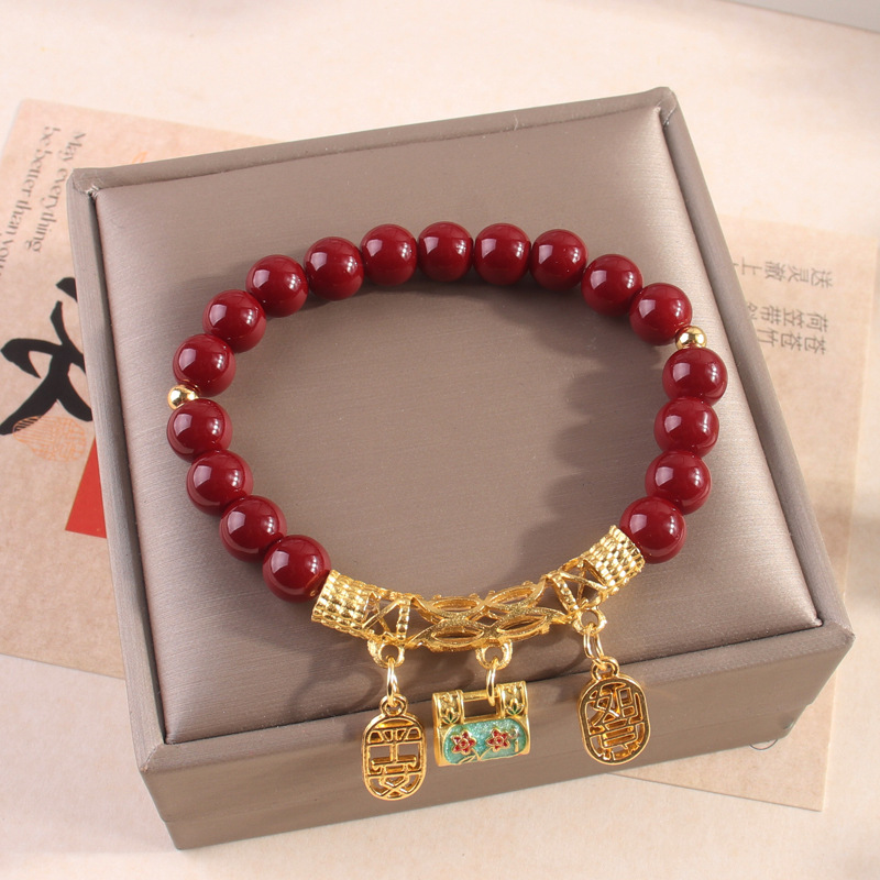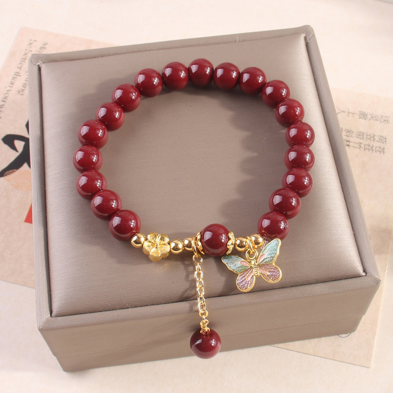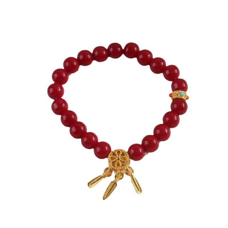 女孩手链捕梦网琉璃红色串珠手链百搭中式国风少女红手链学生手串