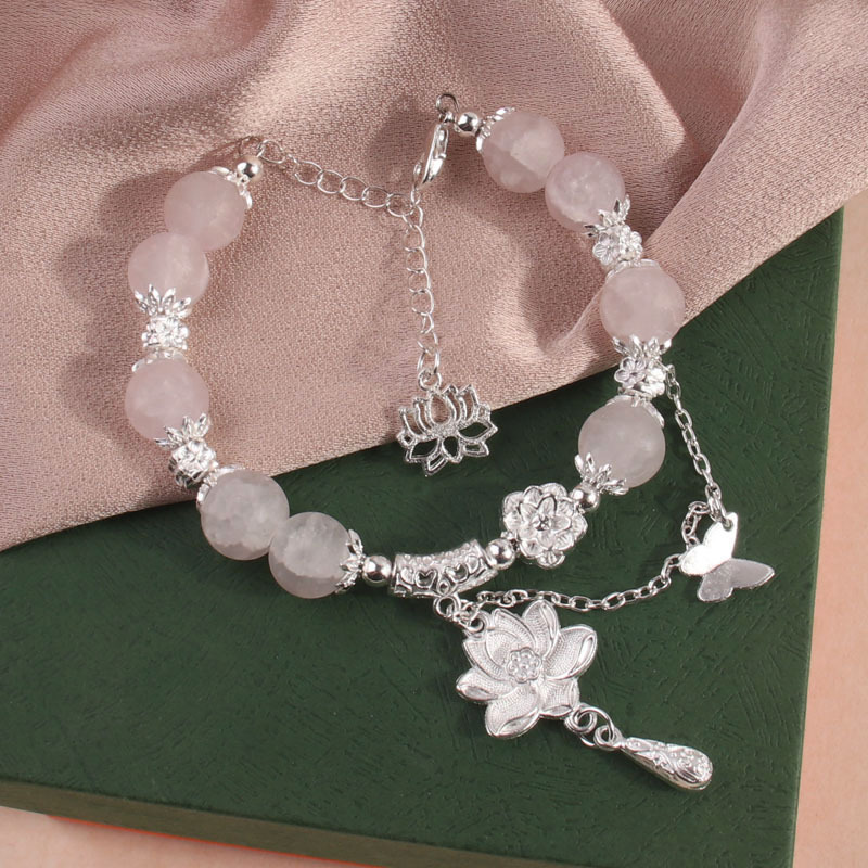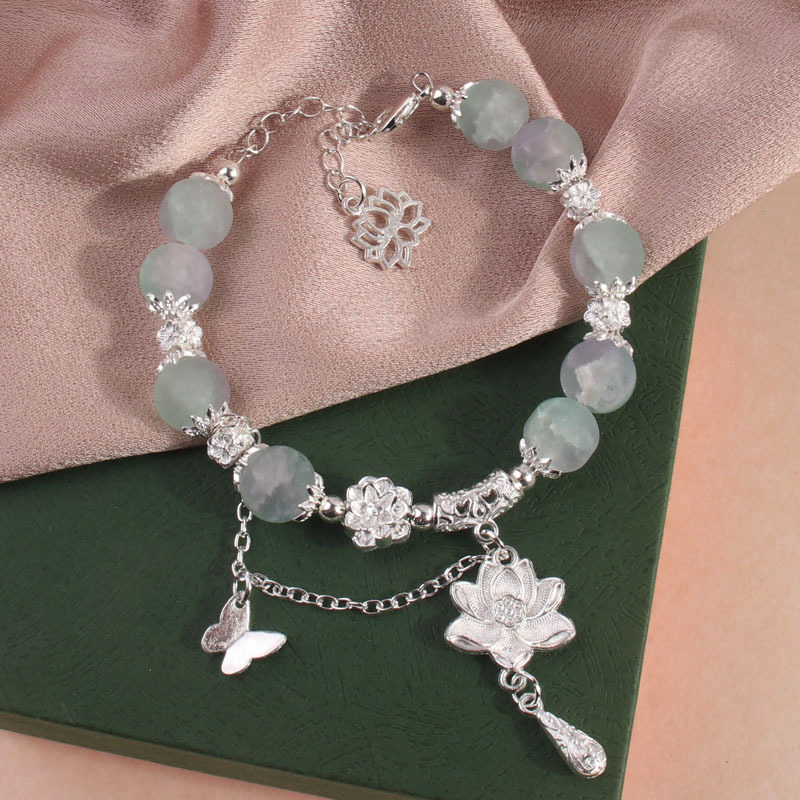 少女琉璃手链中式磨砂水晶莲花蝴蝶手链女生手链学生高级感手串