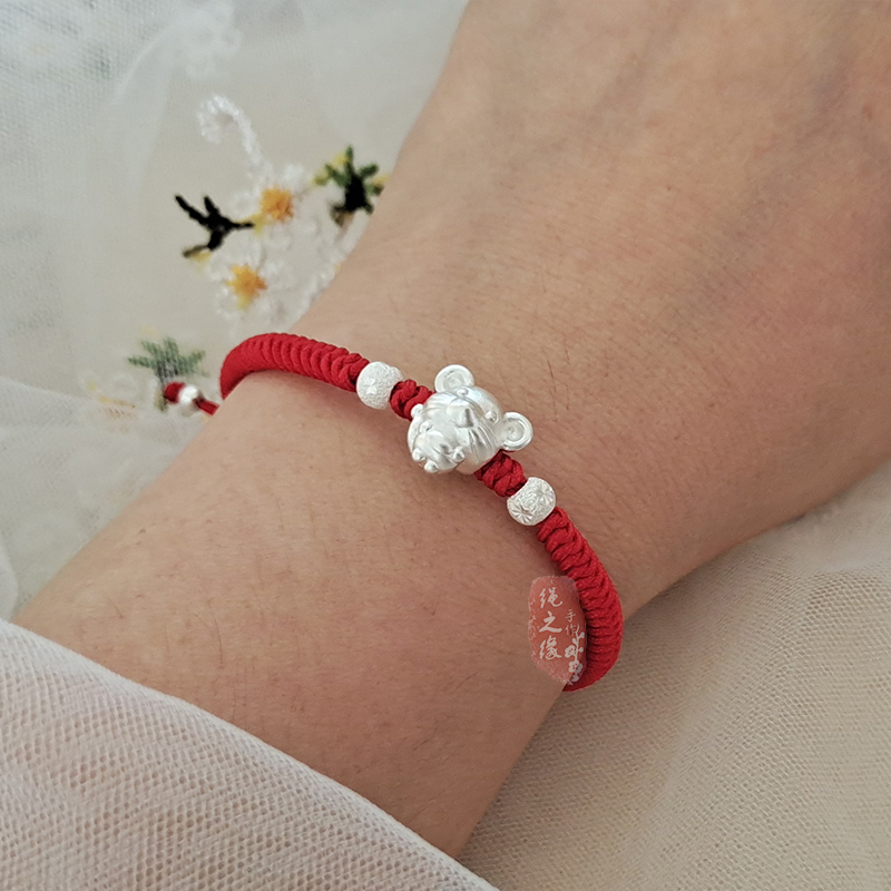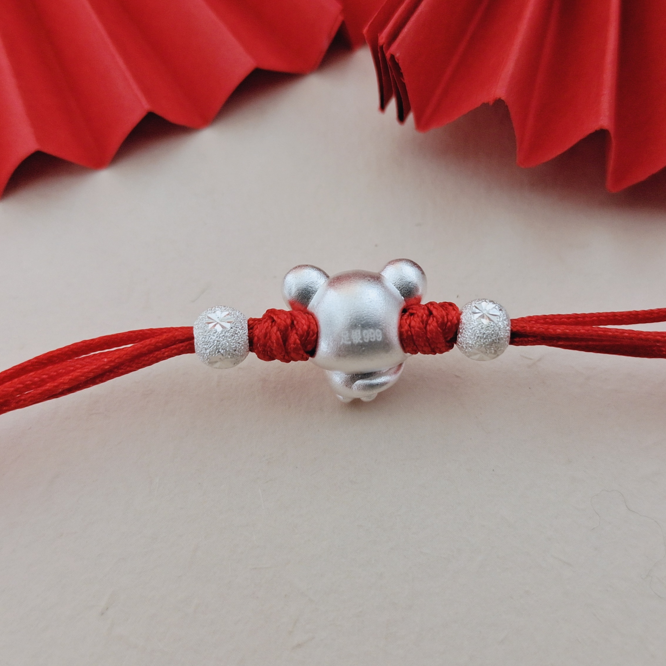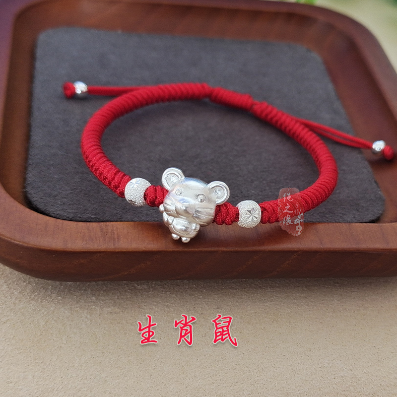 足银生肖鼠3D硬银鼠来宝生肖手链情侣编绳宝宝红绳儿童手绳女礼物