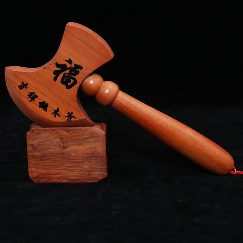 龙头雕刻桃木斧摆件桃木雕刻龙头斧工艺品摆件木盒包装桃木雕刻