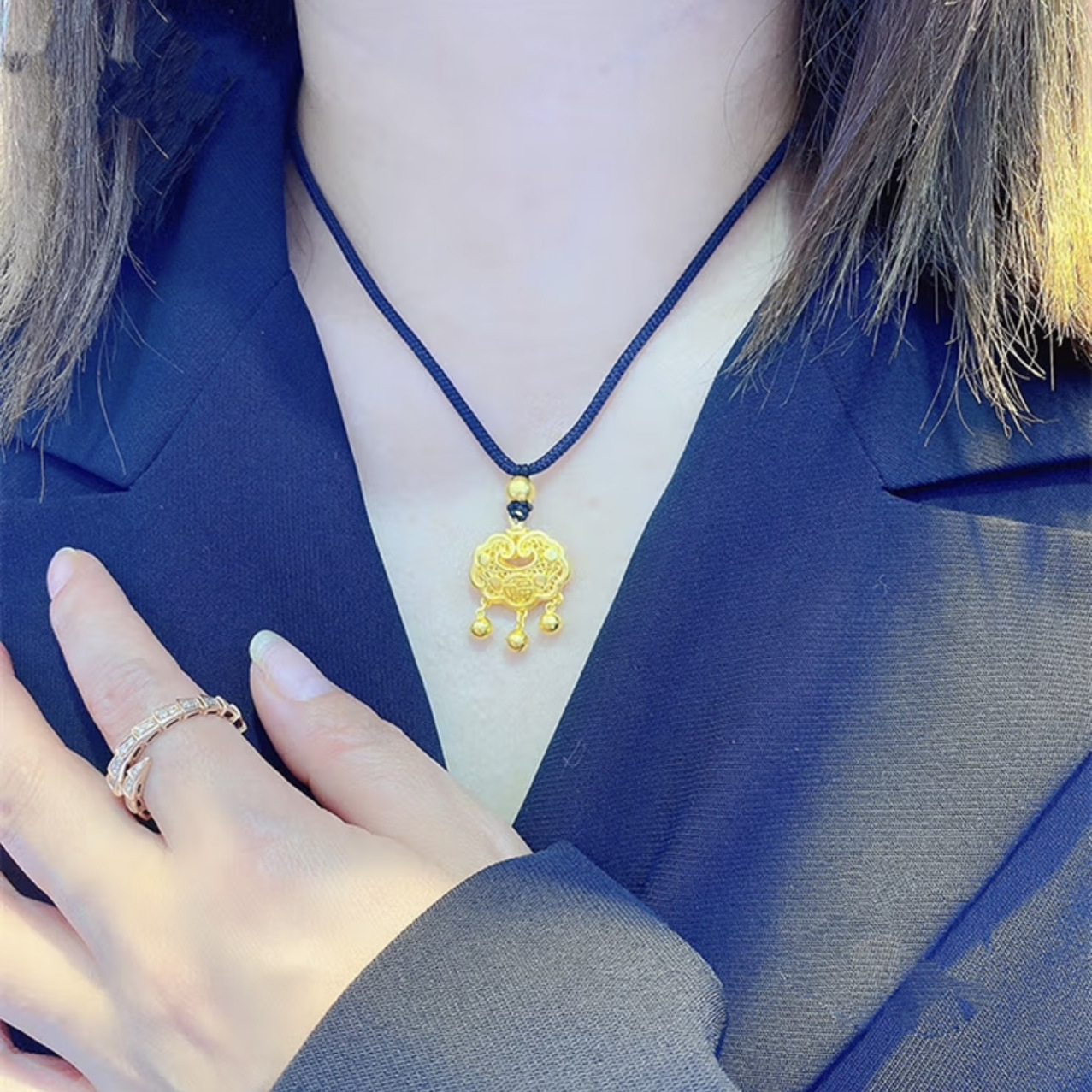 沙金平安锁吊坠福字项链挂坠女编织绳高档百搭轻奢时尚生日礼物