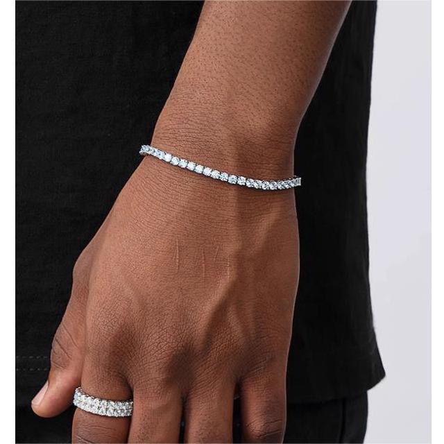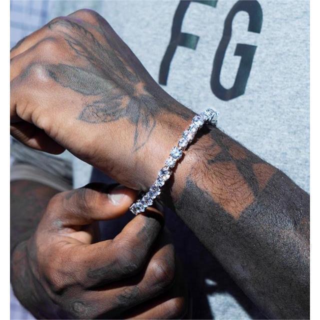 钛钢合成锆石手链 不掉色满圈锆石冰糖网球链ins小众设计男女情侣