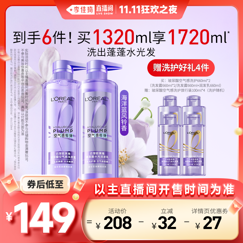 【李佳琦直播间双11狂欢之夜】欧莱雅玻尿酸洗发水套装控油蓬松*