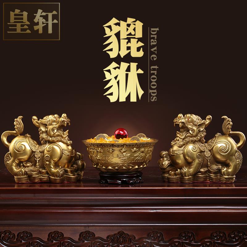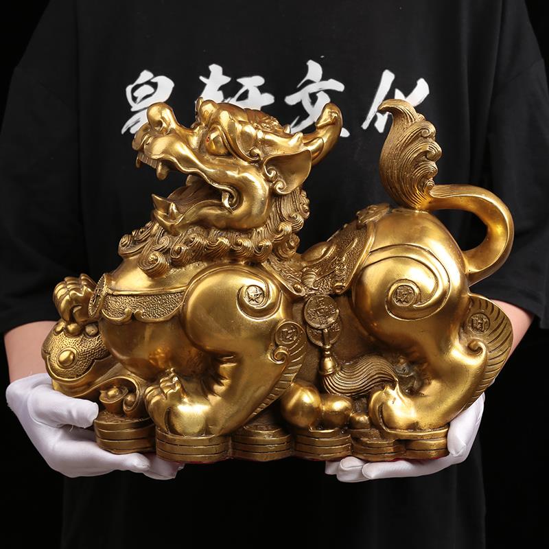 铜貔貅招财摆件一对纯黄铜镇宅貔貅风水皮丘家用店铺开业装饰房间