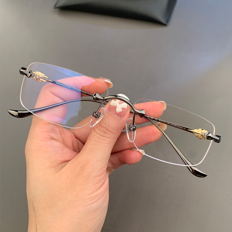 马吉他新品眼镜框打孔商务男女款无框时尚复古方形大框可配近视眼