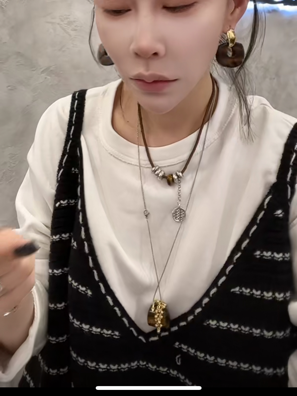 小众设计感复古虎眼石串珠项链新中式咖色皮绳网红风锁骨链脖颈链