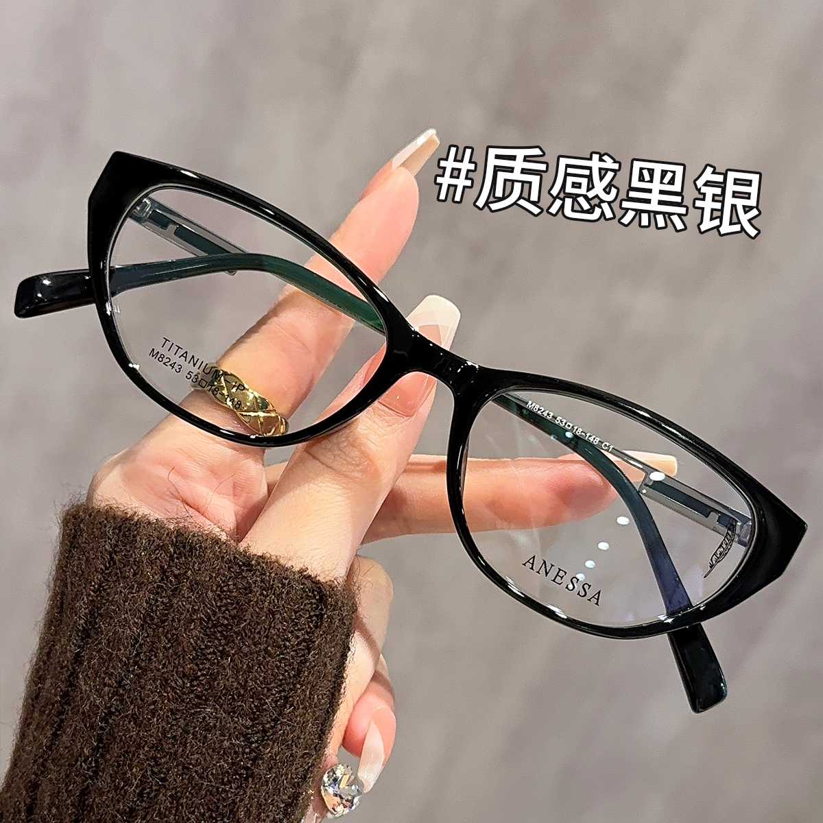 超轻纯钛显白橄榄眼镜女近视可配度数猫眼高级感素颜小框眼睛框架