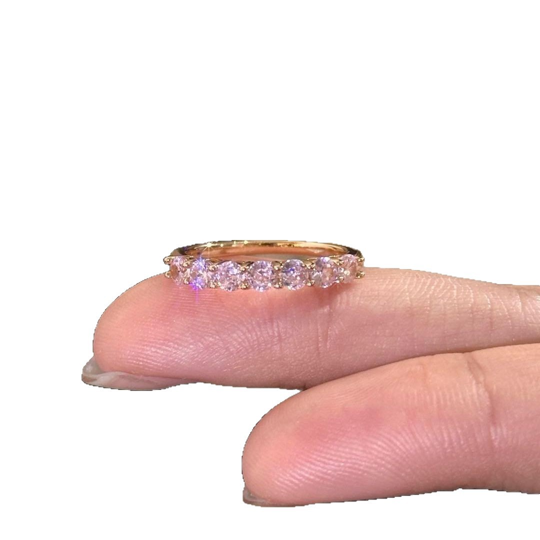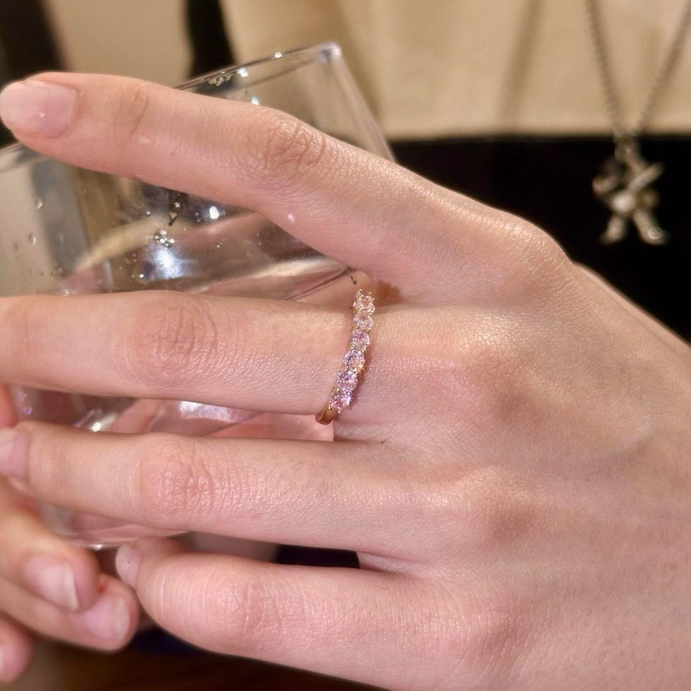 甜美系渐变粉钻满钻樱花粉半圈排戒锆石戒指小众百搭粉色开口戒