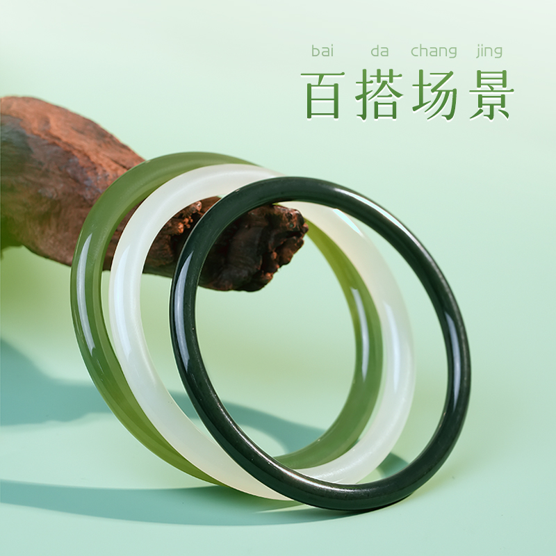 印象眸和田玉手镯叮当镯玉镯子细圆条手饰正品玉石送女友生日礼物