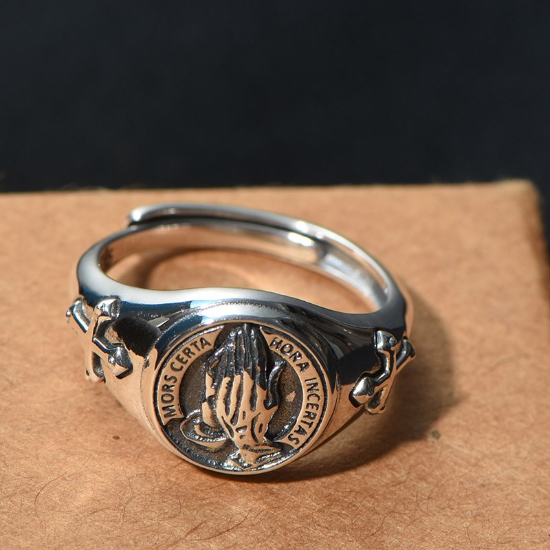 男戒指高级感复古祈祷之手男生开口可调节潮人S个性男士指环饰品