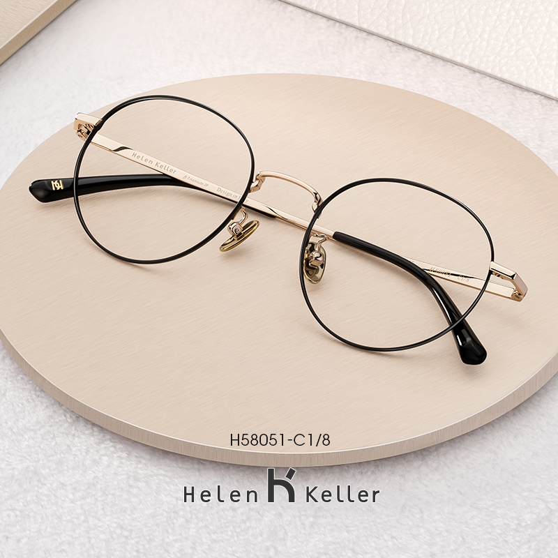 海伦凯勒钛架防蓝光近视眼镜女情侣眼镜框极简圆框男眼镜框H58051