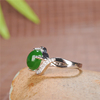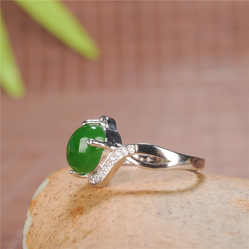 新疆和田玉碧玉戒指 女款时尚925银镶嵌玉戒指 潮流女士玉指环