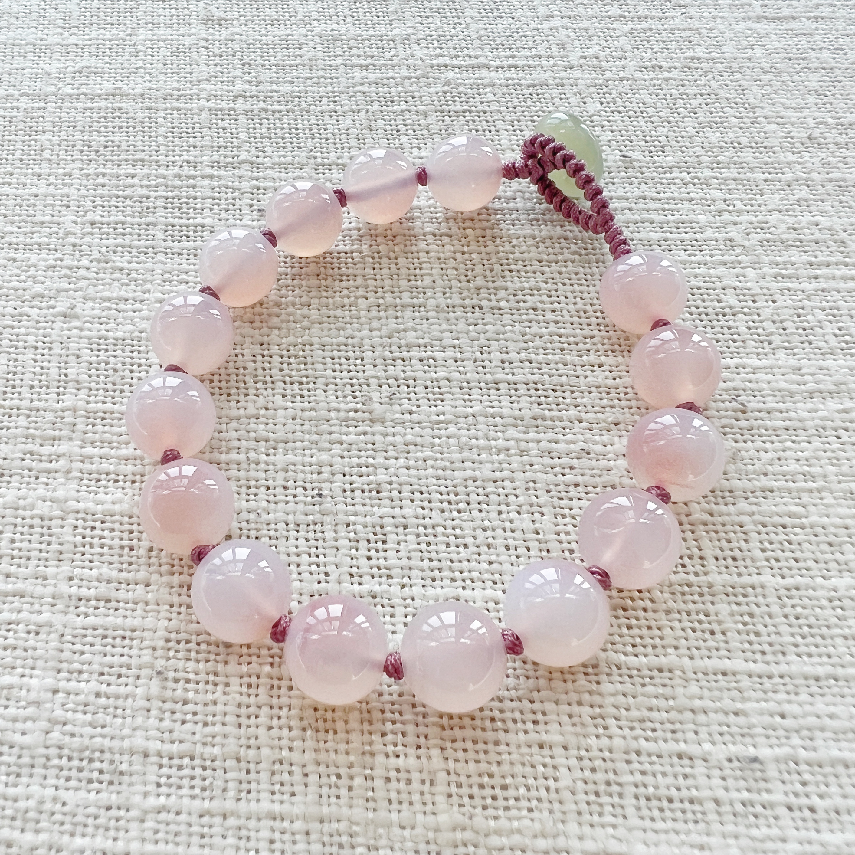 偶遇良人|原创设计天然蜜桃盐源玛瑙樱花粉和田玉平安扣清新手链
