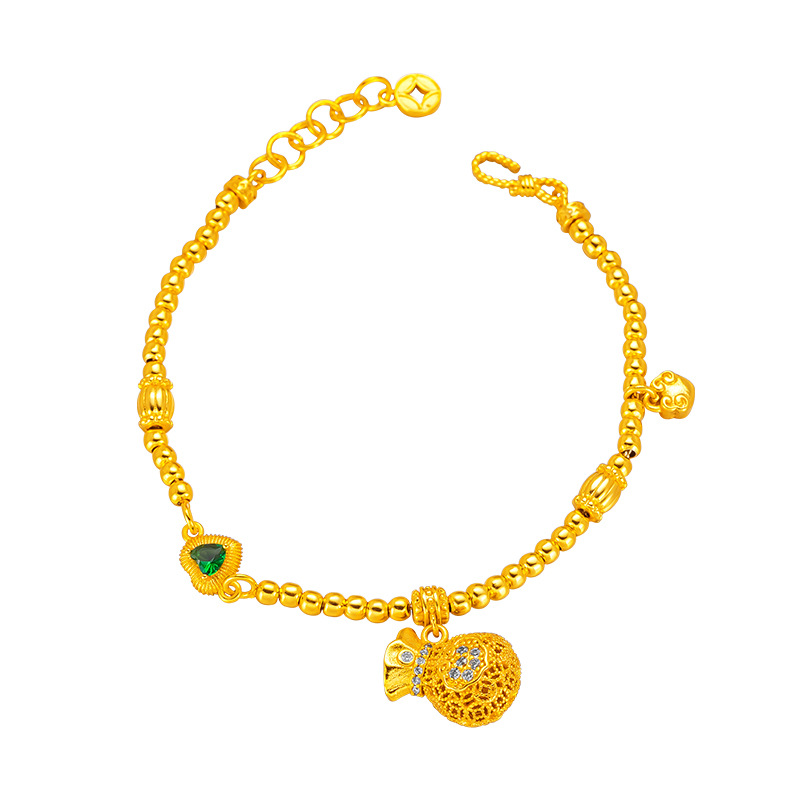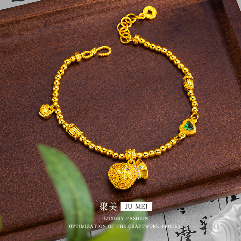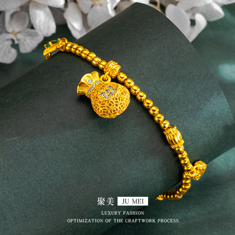 越南沙金微镶祥云福袋手链花丝代代富钱福袋算盘珠宫廷风手链饰品