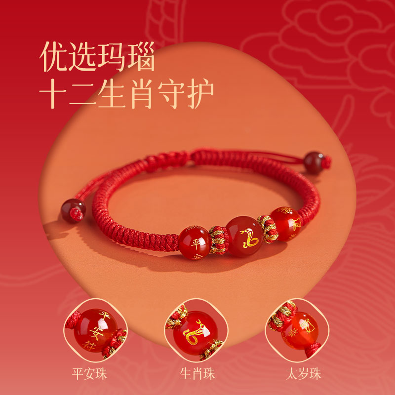 2025蛇年本命年红绳手链生肖蛇太岁护身符编织红手绳男女龙猪虎猴