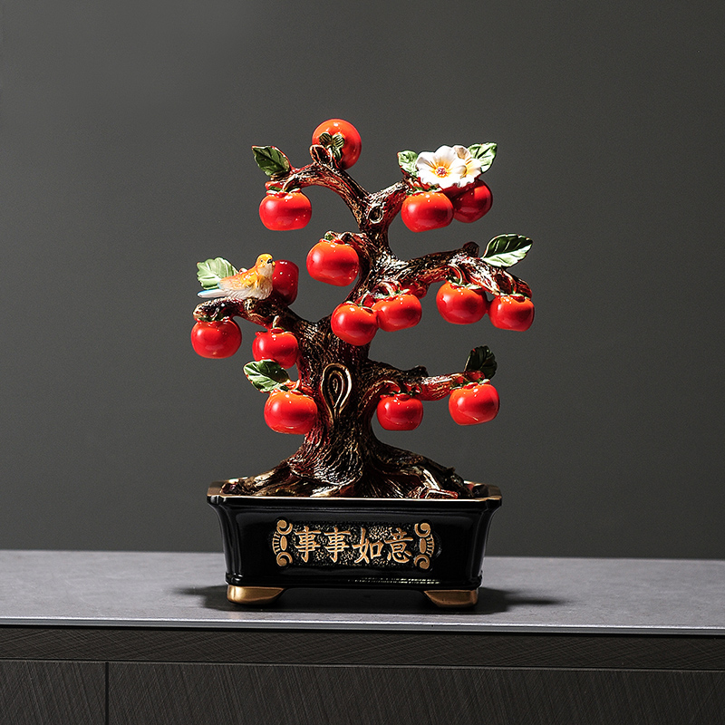 高颜值柿柿如意盆栽装饰品家用客厅茶几桌面摆件喜庆吉祥乔迁礼品