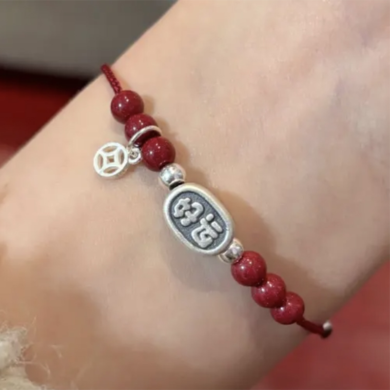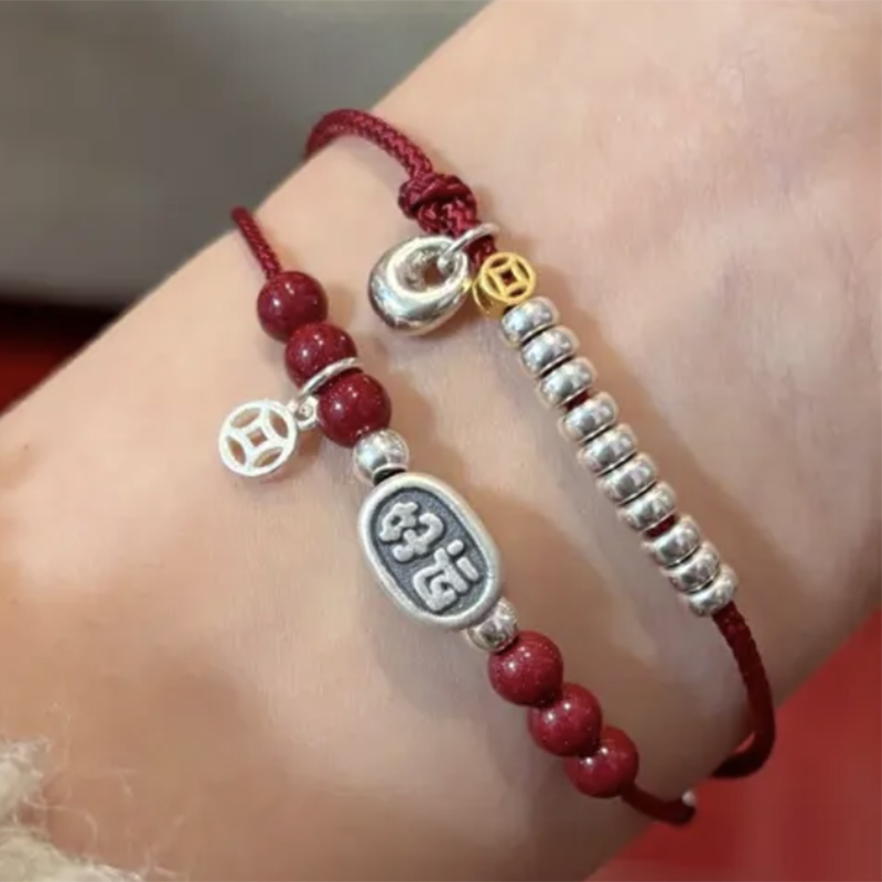 好运连连s925纯银手链女时尚简约小众设计手工编织转运珠闺蜜手绳