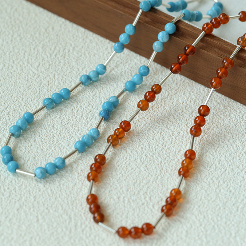 TU家 小众设计ins风蓝天石石榴石串珠项链手链百搭简约叠戴锁骨链