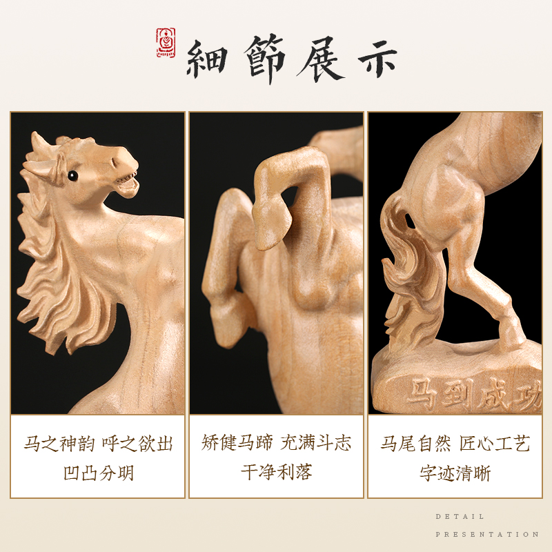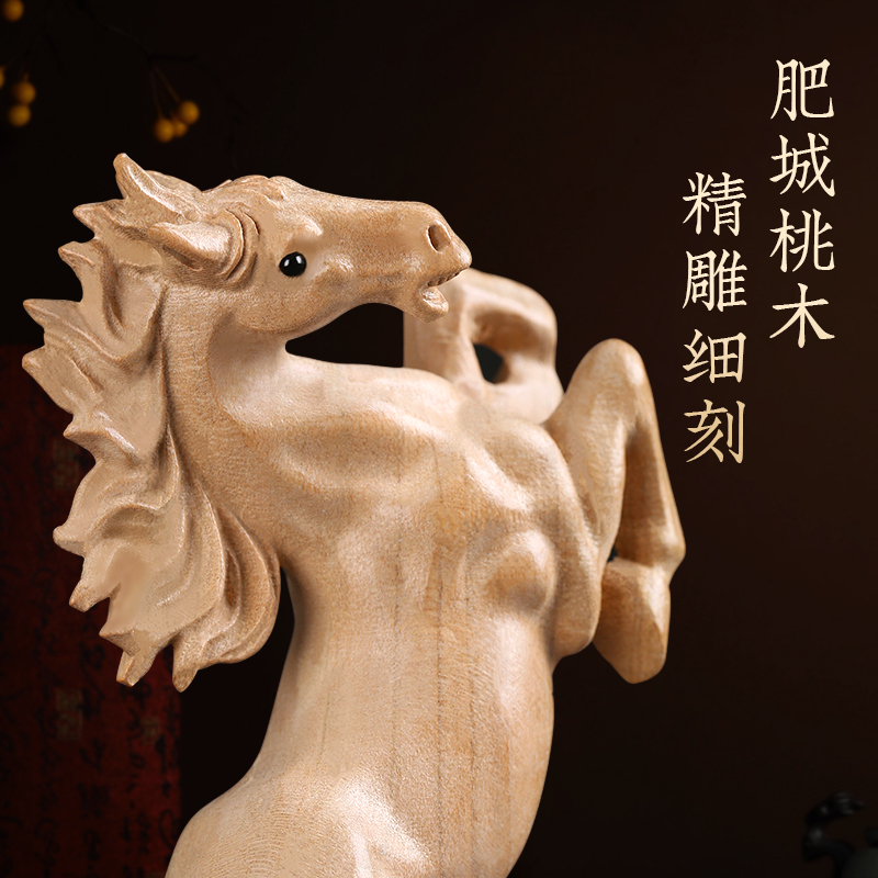 桃木雕马到成功摆件n生肖马实木雕刻办公室桌面摆设桃木工艺品