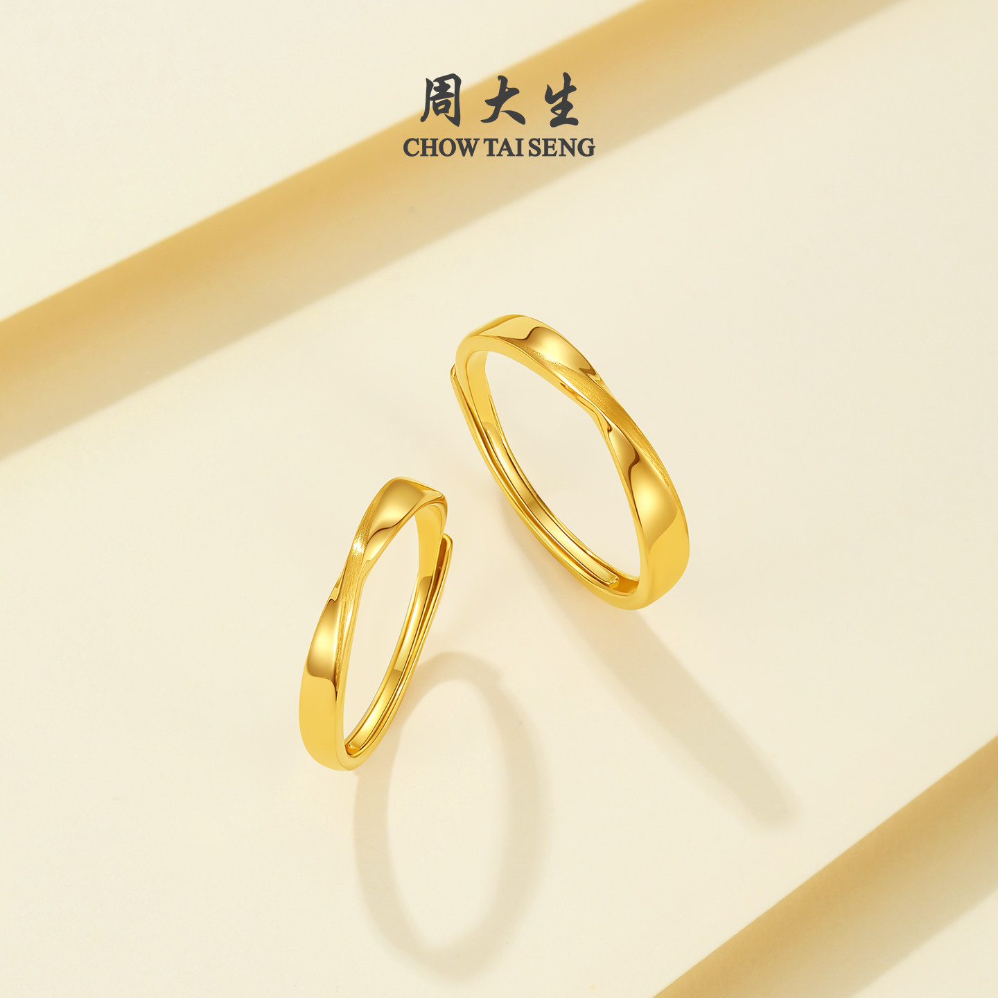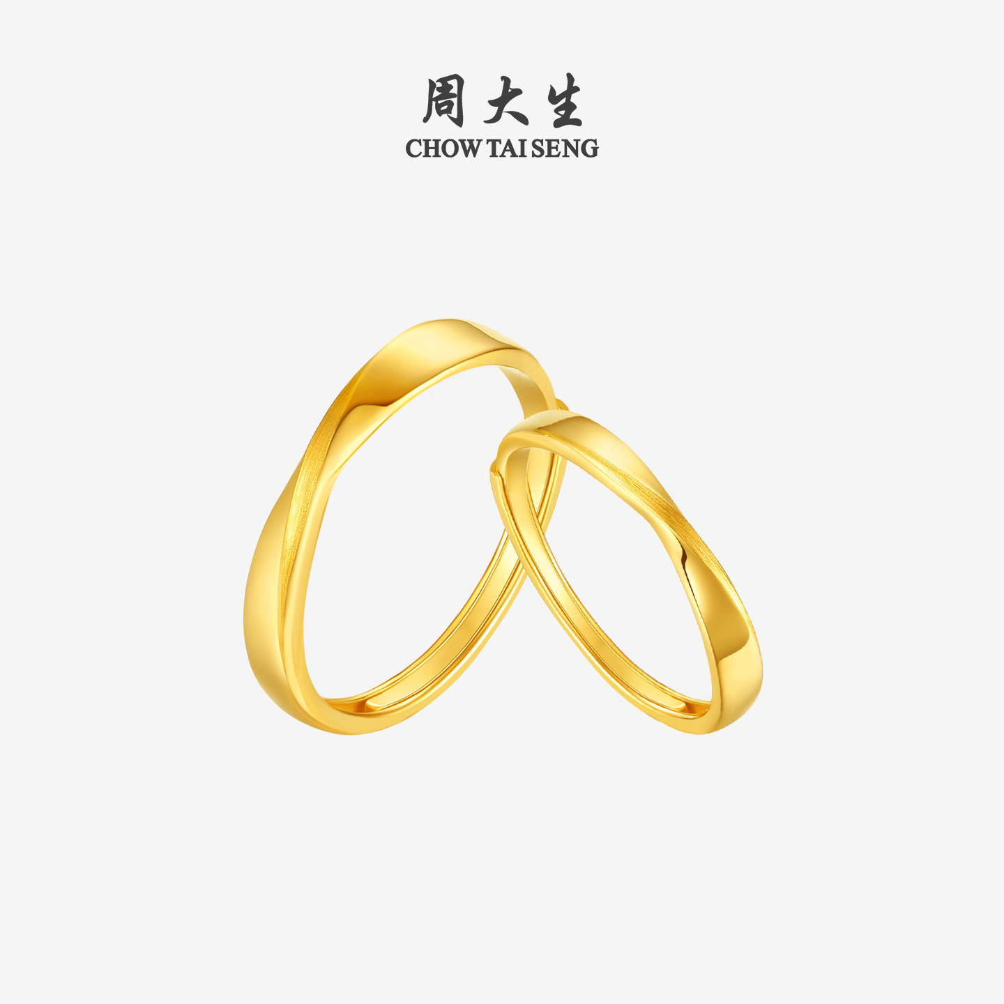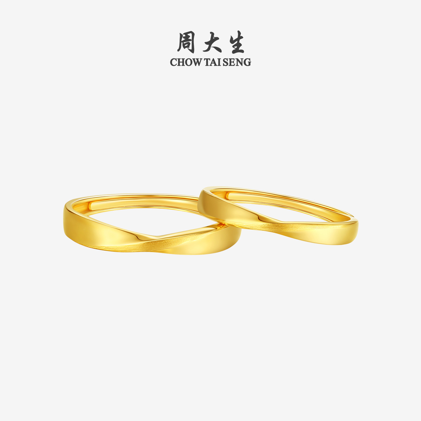 圣诞礼物周大生黄金戒指莫比乌斯环足金情侣对戒结婚手饰送男女友