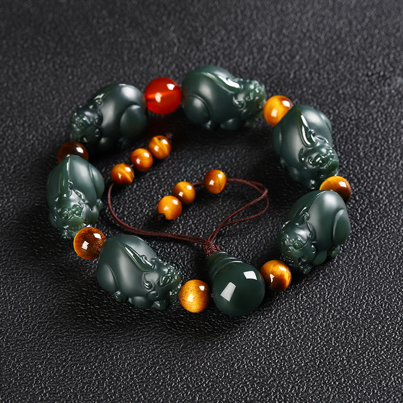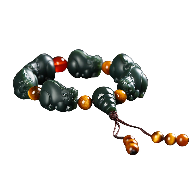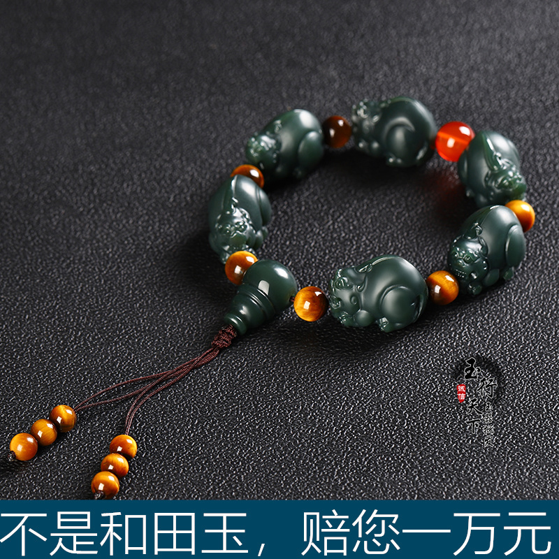 新款和田玉貔貅手链新疆青玉细料男士女士貔貅手串玉石玉器带证书