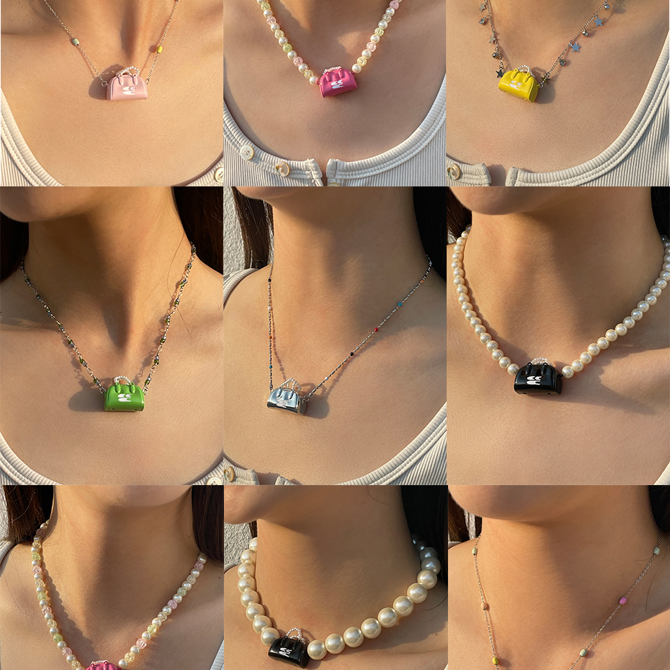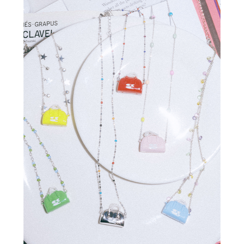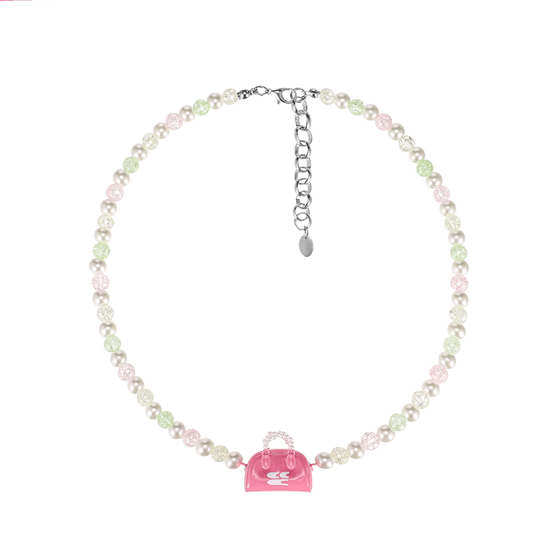 CryingCenter 夏日多巴胺彩豆珠珍珠mini波士顿手提包挂坠项链