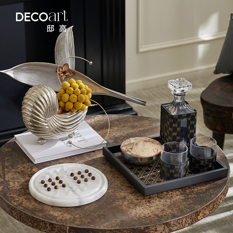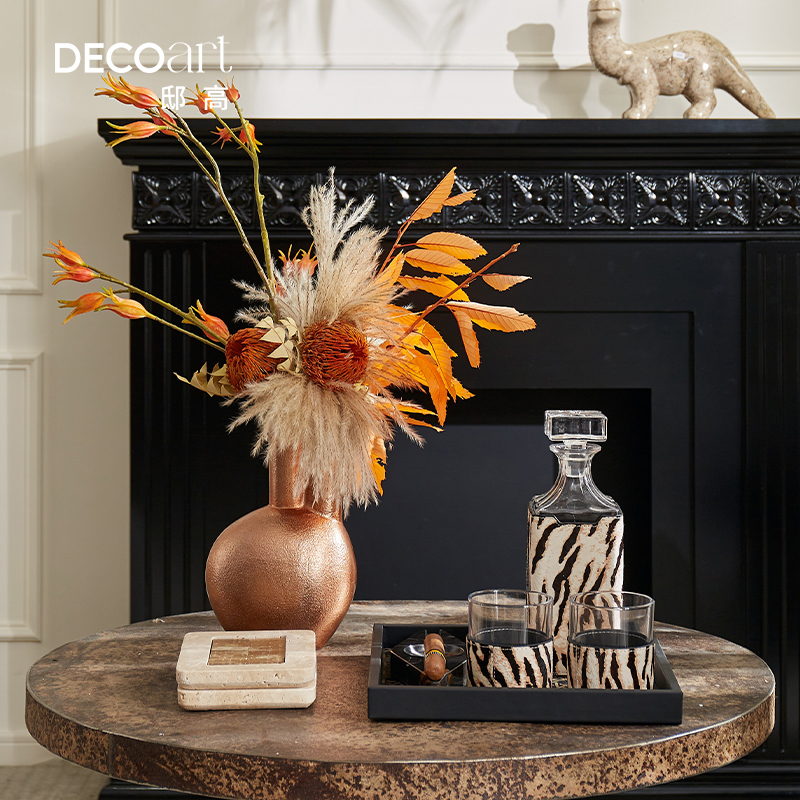 样板间餐厅餐桌高级感斑马纹马毛酒具托盘酒瓶摆件套装氛围感布置