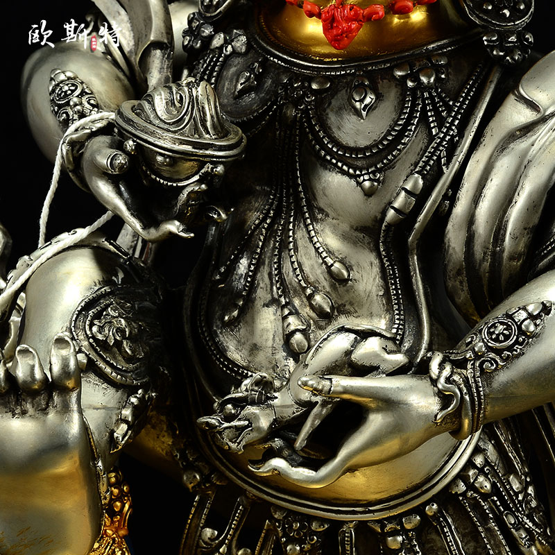 欧斯特白铜鎏金《黑财神》精工铜雕《五姓财神》五色财神铜像摆件