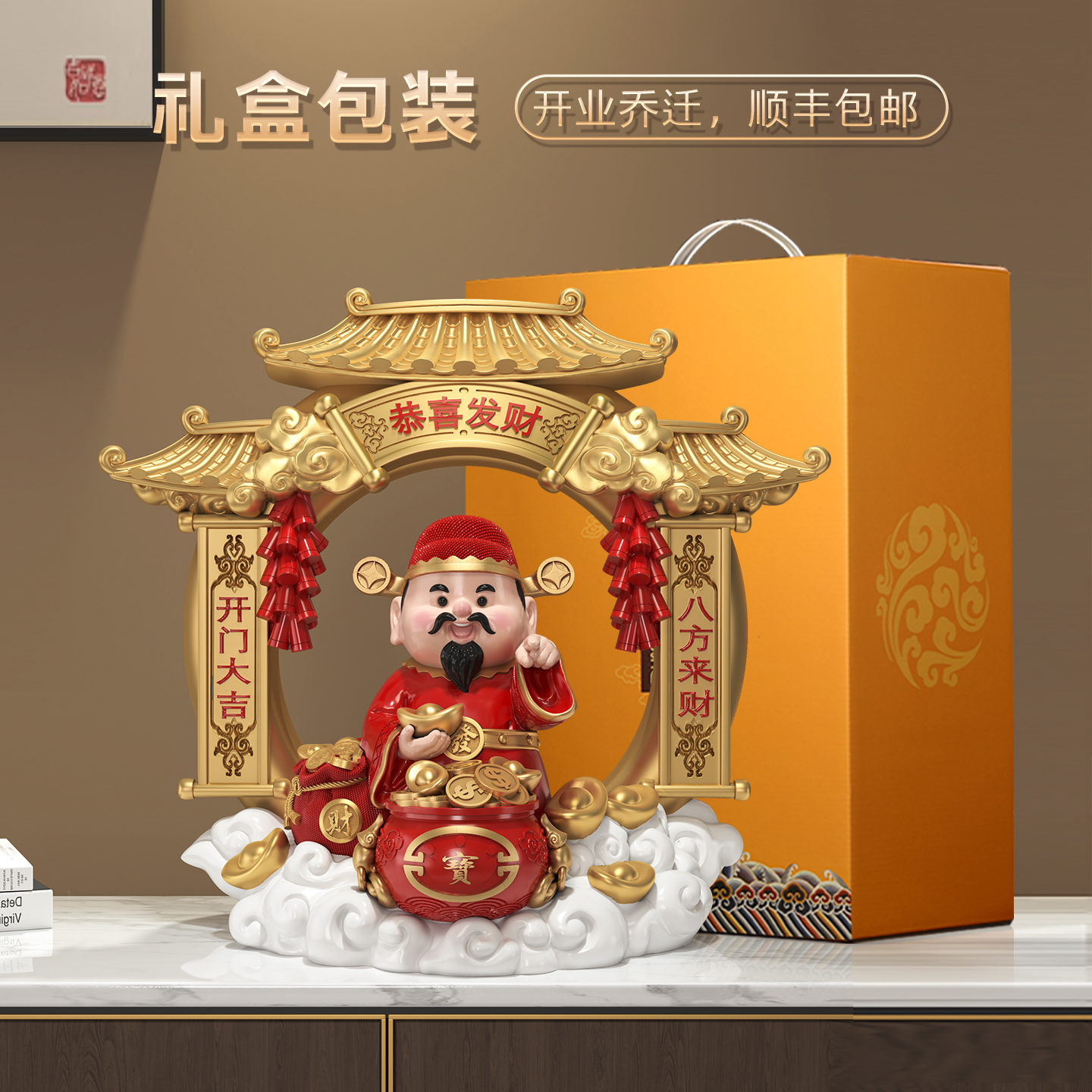 指定发财创意国潮财神爷摆件财神店铺前台收银台装饰新店开业礼物