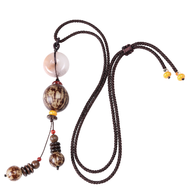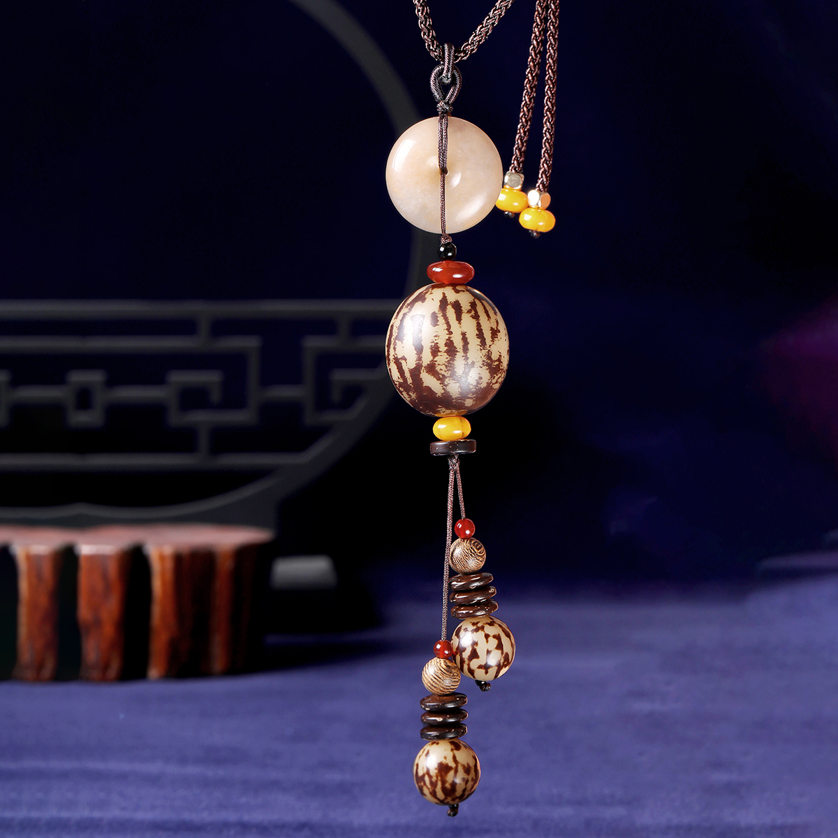 复古菩提毛衣链玉石平安扣吊坠民族风百搭长款项链女冬季搭配毛衣