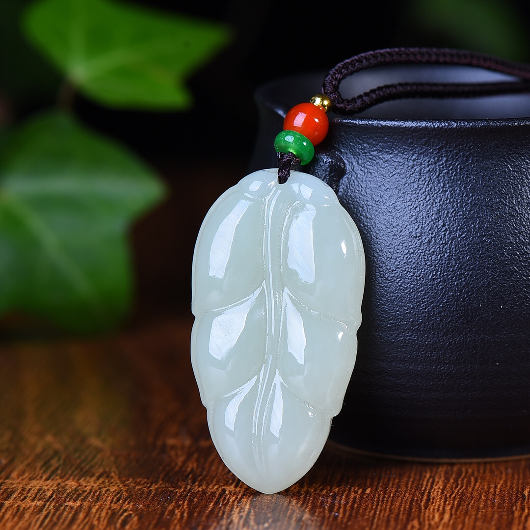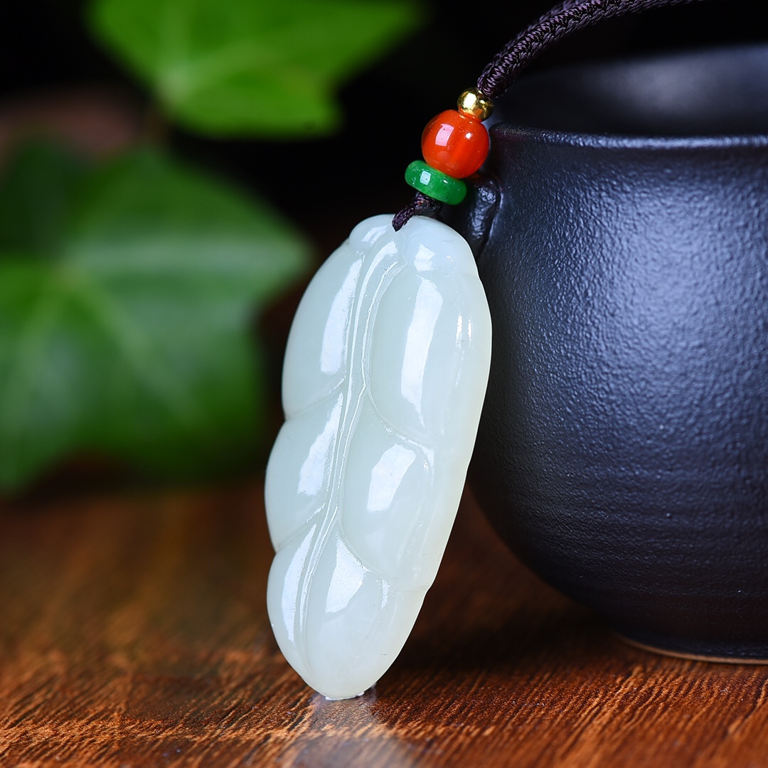 新疆和田玉羊脂玉白玉青白玉金枝玉叶树叶吊坠男女款挂件玉坠玉佩