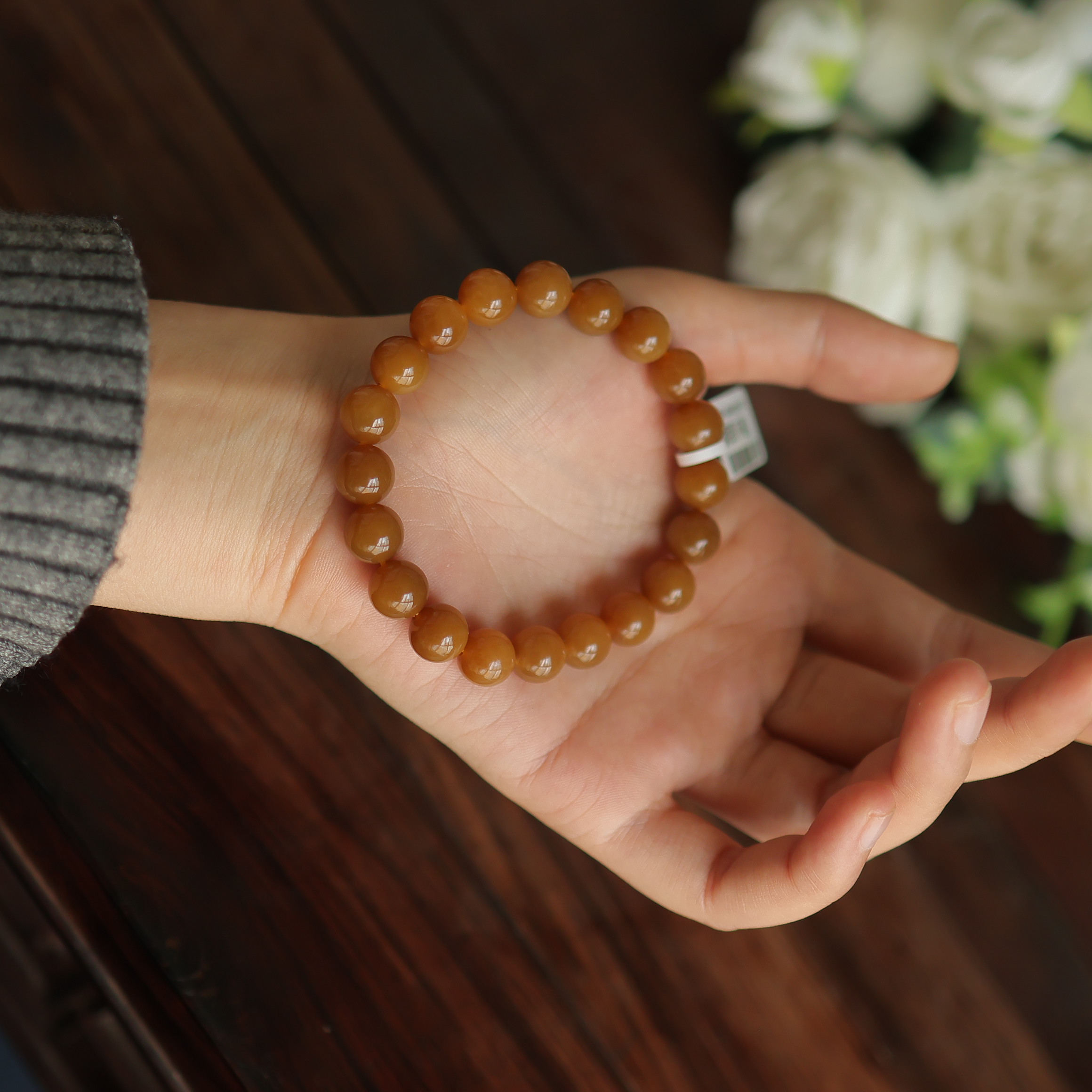 天然和田玉10mm糖玉圆珠单圈 精品 礼物 有质感 手串 货号14961