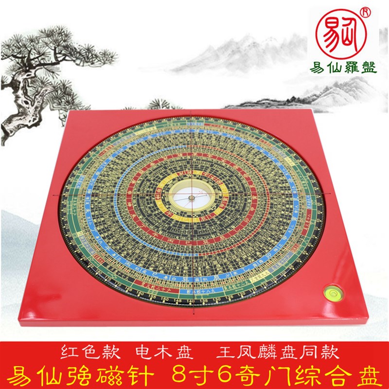 易仙强磁针8寸6奇门综合罗盘凤麟 三元综合三般卦红色电木盘 摆件