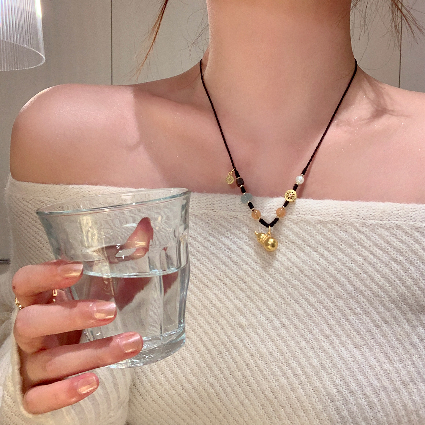 原创新中式小马罗盘葫芦天然石吊坠项链女轻奢小众颈链配饰毛衣链
