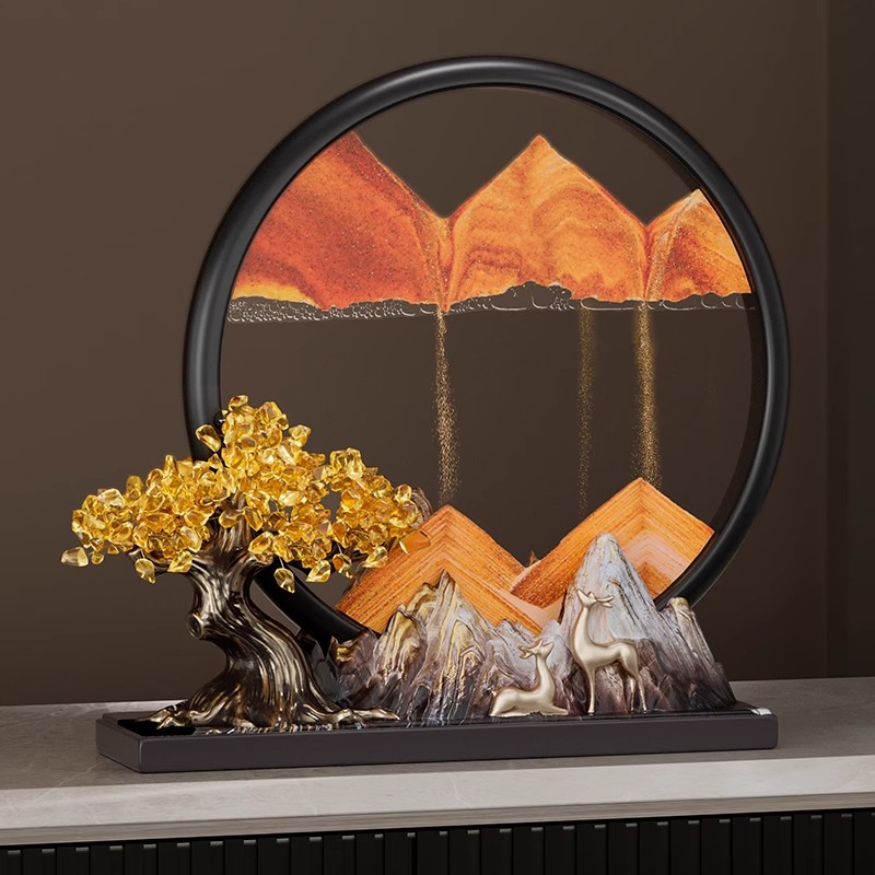 发财树流沙画网红摆件新中式客厅办公室装饰品乔迁开业礼物高档件