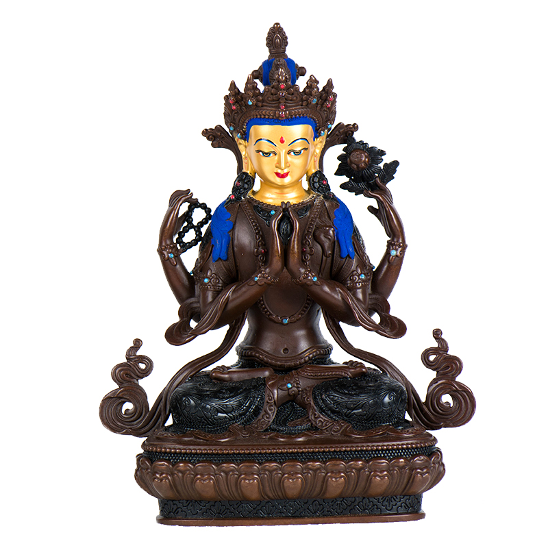 铜仿古雕花四臂观音铜像西藏家用居家桌面观音菩萨